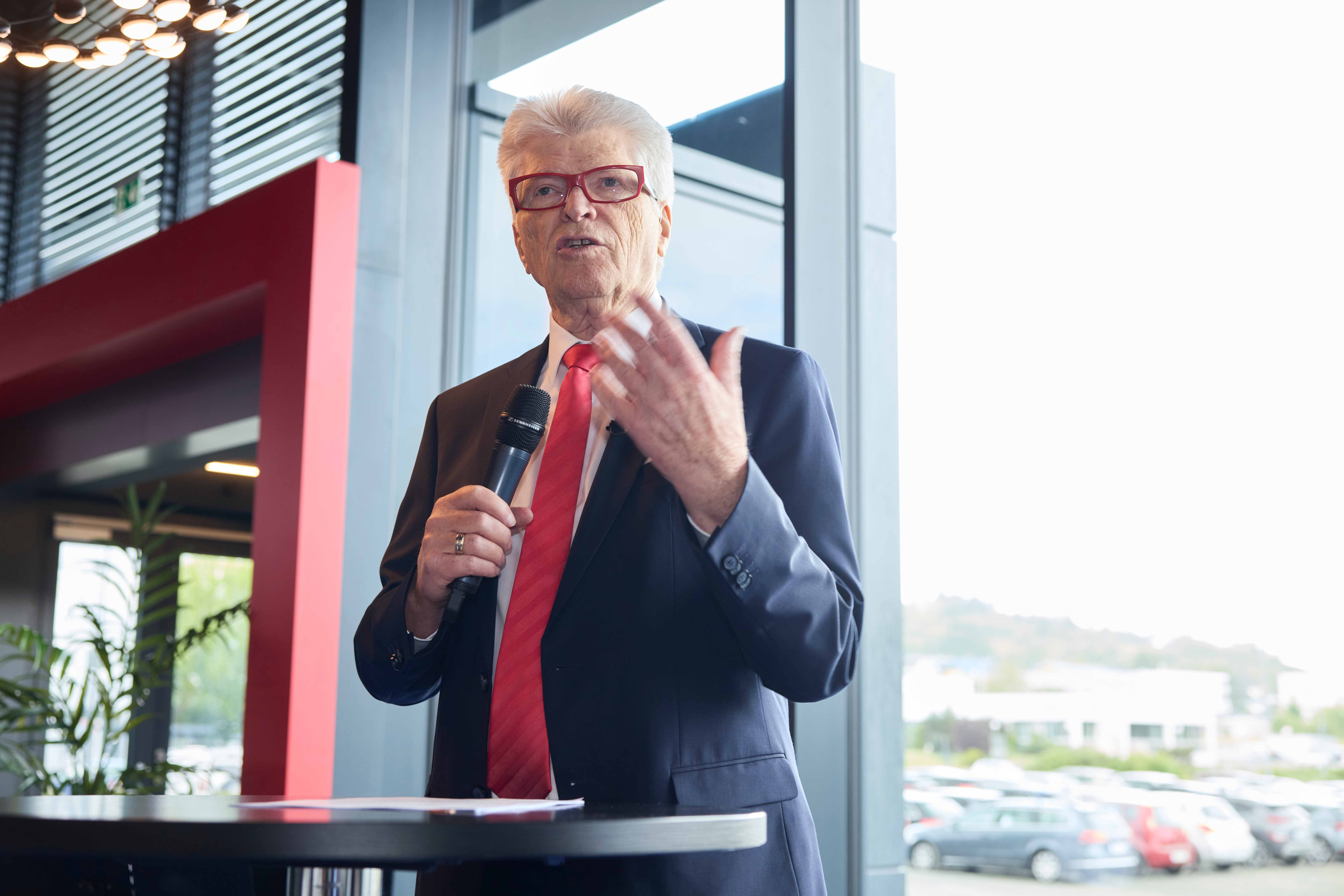 Tief beeindruckt zeigte sich der Landrat des Lahn-Dill-Kreises, Carsten Braun, der seinen Dank direkt an Prof. Loh richtete: „Ich bin Ihnen dankbar für das klare Bekenntnis der Unternehmensgruppe zum Standort Haiger und zur Region an Lahn und Dill. Das ist nicht selbstverständlich und das wissen wir alle sehr zu schätzen. Es ist unendlich wertvoll für die Menschen in der Region, gute Arbeit vor Ort zu finden.“ Daran schloss sich Haigers Bürgermeister Mario Schramm an: „Was Sie der Region und Haiger an Arbeitsplätzen bieten und sichern, das ist unbezahlbar. Vielen Dank für Ihr Wirken in der Vergangenheit und für die Zukunft.“